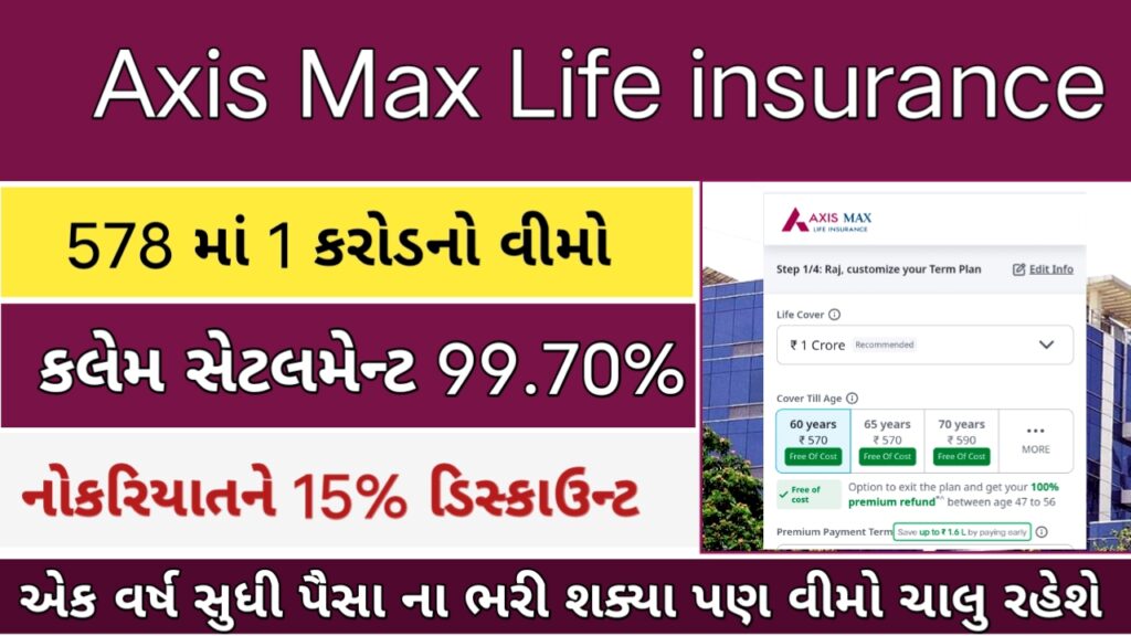 આજે આપડે એક્સિસ મેક્સ લાઇફ ઇન્શ્યોરન્સ પ્લાન વિશે વાત કરવાના છે જેનો ક્લેમ સેટલમેન્ટ રેશિયો 99.70% છે. જે દરેક કંપનીઓના ઇન્સ્યોરન્સ પ્લાન કરતા વધારે છે. મતલબ દાવા માટે 100 અરજી આવી હોઈ તો તેમાંથી 99.70% લોકો ને પૈસા મળી ગયા છે
