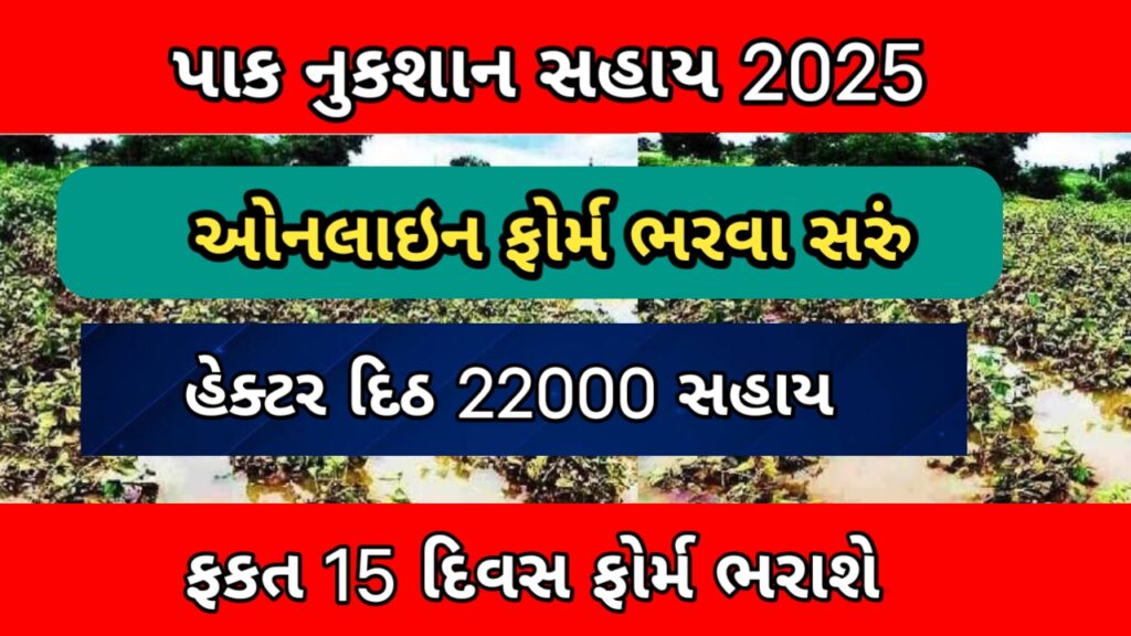 પાક નુકશાન સહાય ના ઓનલાઇન ફોર્મ 14 નવેમ્બર થી ચાલુ થશે અને તે પછી ના પંદર દિવસ સુધી માં તમારે ફોર્મ ભરી દેવાના રહેશે