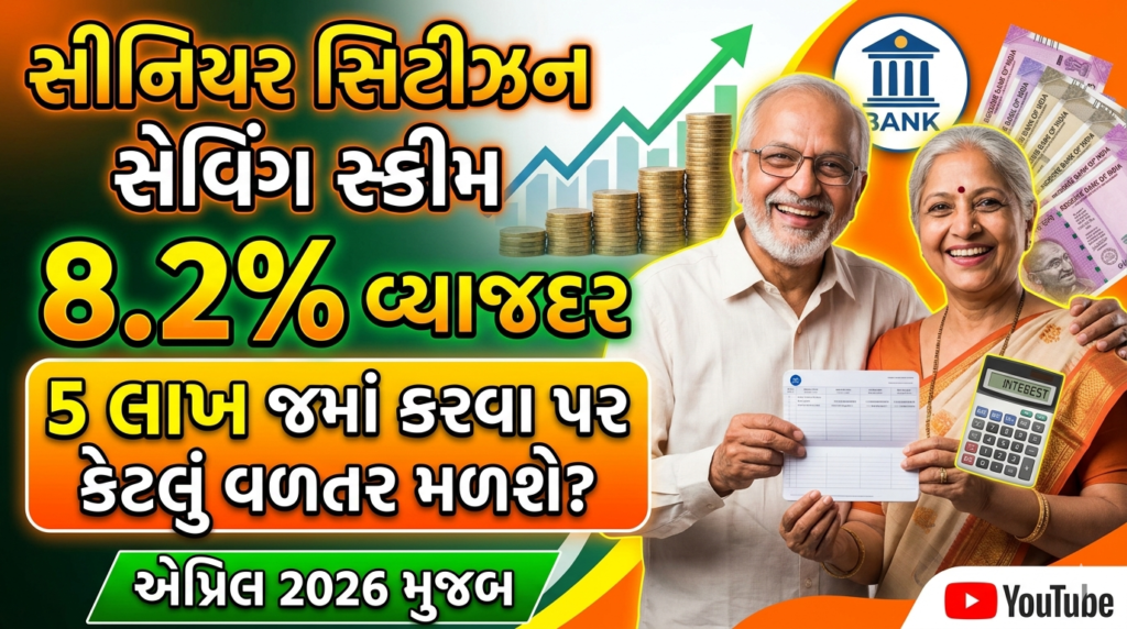 આમ તો પોસ્ટ ઓફિસમાં ઘણી બધી સ્કીમો ચાલે છે પરંતુ તેમાં એક સ્કીમ સીનીયર સિટીઝન સેવિંગ સ્કીમ(SCSS) વિશે આપણે સંપૂર્ણ માહિતી મેળવીશું જેમા તમને અત્યારે એપ્રિલ 2026 મુજબ 8.2% વાર્ષિક વ્યાજ મળે છે
