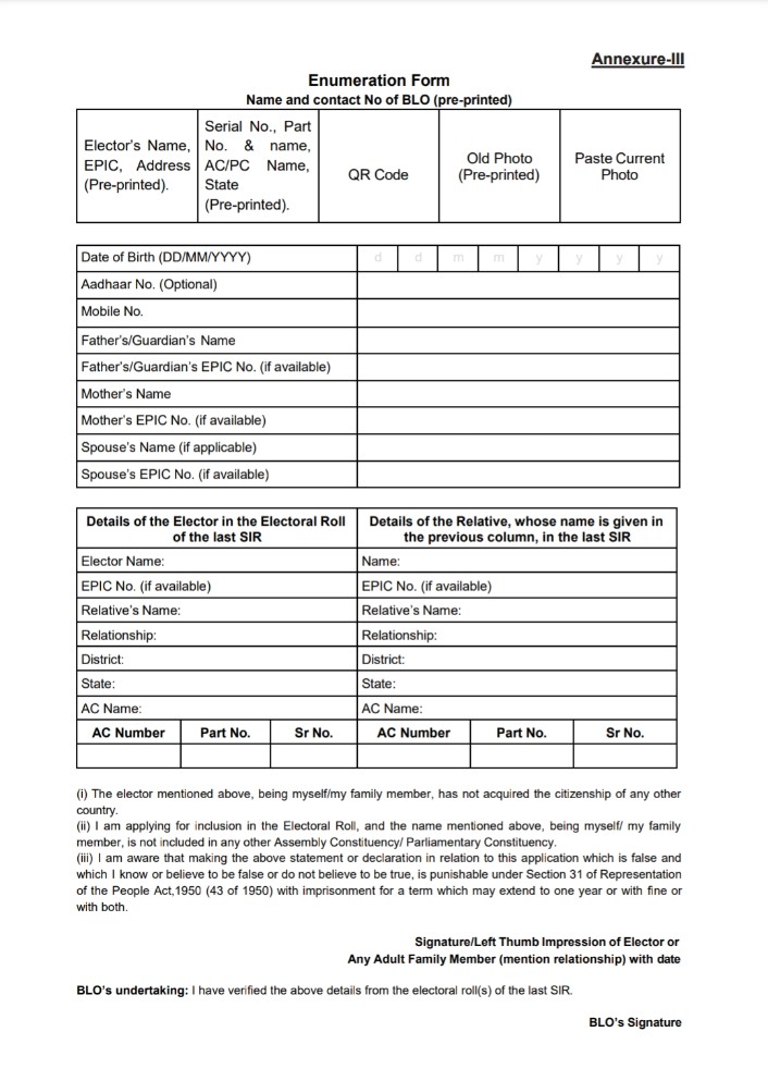SIR ફોર્મ કેવીરીતે ભરવુ , મતદાર સુધારણા ફોર્મ તમામ માહિતી